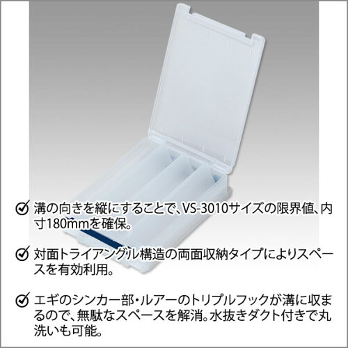 -------- MEIHO リバーシブルシリーズサイズチャート サイズ(内寸) 製品名 80mm対応:ライトゲーム・トラウト用ミノーやジグ リバーシブル85 86mm対応:ライトゲーム・トラウト用ミノーやジグ リバーシブルD-86 リバーシブルF-86 100mm対応:エギ(100mm)、ジグ(40g)、ミノー(90mm) リバーシブル100 120mm対応:メタルスッテ、小型エギ、メタルジグ リバーシブル120 140mm リバーシブル140 145mm 対応:エギ(3.5号)、ミノー(130mm) リバーシブル145 165mm 対応;エギ(4号クラス)、ジグ・ミノー(150mm) リバーシブル160 リバーシブル165 180mm リバーシブル180 -------- 【キーワード】 透明 クリア リバーシブル おかっぱり 使いやすい 堤防 波止 陸 船 波止 バス釣り 管釣り ルアー ブラックバス 青物 タチウオ メタルジグ エギ イカ アオリ メタルジグ ショアジギング オフショア 小さめ 小さい 大きめ 大きい 容量 コンパクト ゲームベスト 大容量 メイホー 収納 入れ物 ケース 釣り 釣具 フィッシング 箱 バッカン おすすめ 人気 定番 丈夫 頑丈 割れにくい バケットマウス ランガンシステム タックルボックス バーサス vs versus